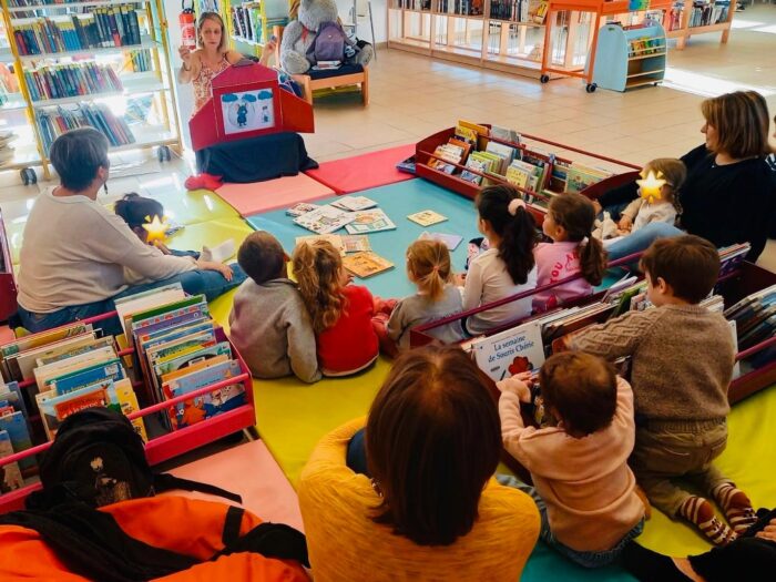 Mercredi matin, petits et grands etaient au rendez-vous à la médiathèque pour « Contes en chaussettes » 🧦.
