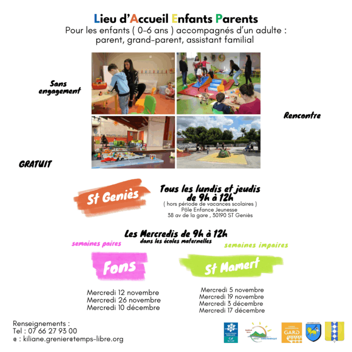 🧸Les Mercredis → au sein des écoles maternelles de Fons (sem. paires) et de Saint-Mamert-du-Gard (sem. impaires).