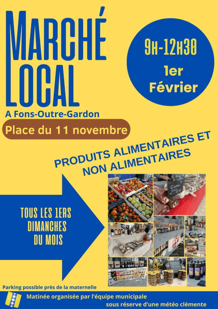 🗓️ Marché local de Fons du 1 février 2026🕐 9h à 12h30